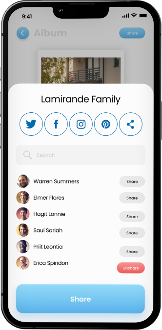 Easily create Albums, like your family photo album, an album for your real friends, an album for the people at work that you pretend to be friends with, and one for your crazy Uncle Joe. Then, make Folders in these Albums for each individual event, but share them only with the people involved. Except for Joe’s. Share that with everyone.